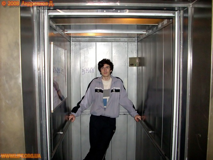 Автор сайта в кабине грузопассажирского лифта с продольной кабиной